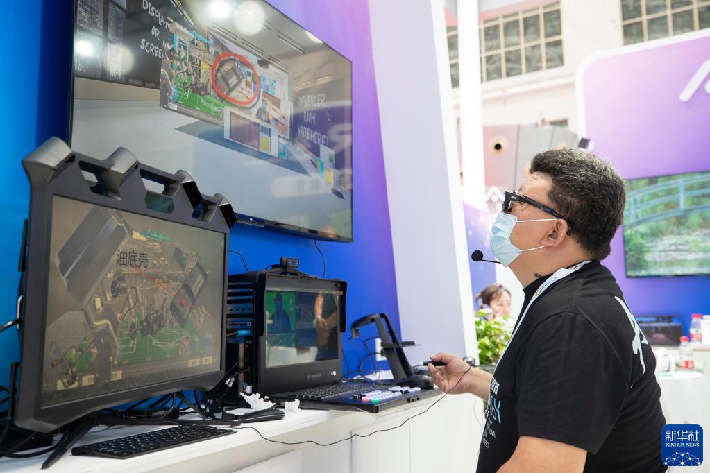8月10日,在2022世界5G大會展廳里,參展商現(xiàn)場演示5G+VR在線教學(xué)。
