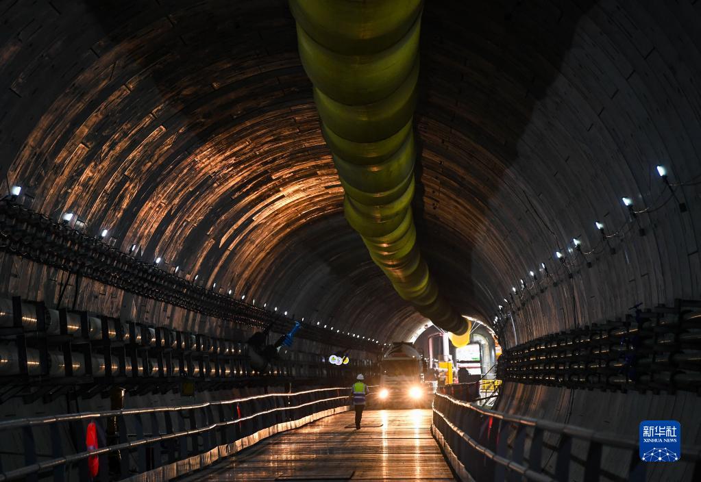 8月10日,施工人員行走在深江鐵路珠江口隧道已完成段。 新華社記者 劉大偉 攝