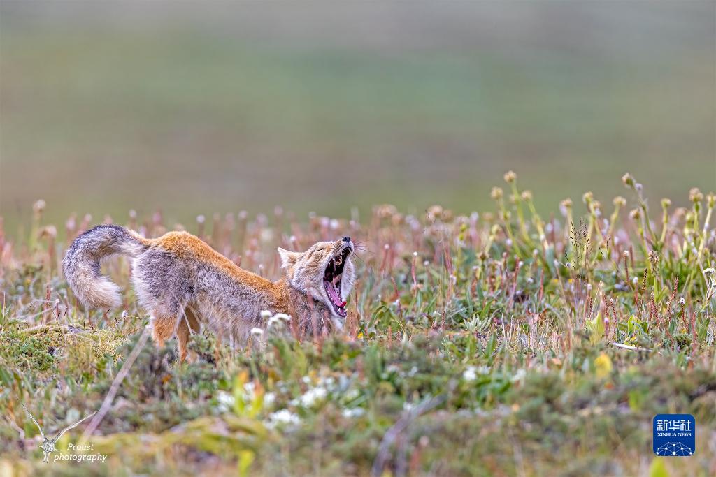 這是在昂賽大峽谷內拍攝的藏狐(8月6日攝)。