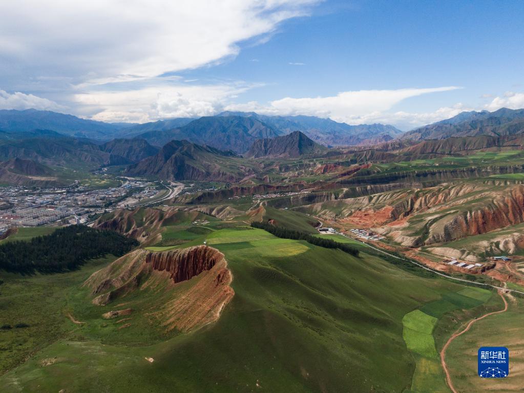 青海省海北藏族自治州祁連縣風光(8月10日攝,無人機照片)。