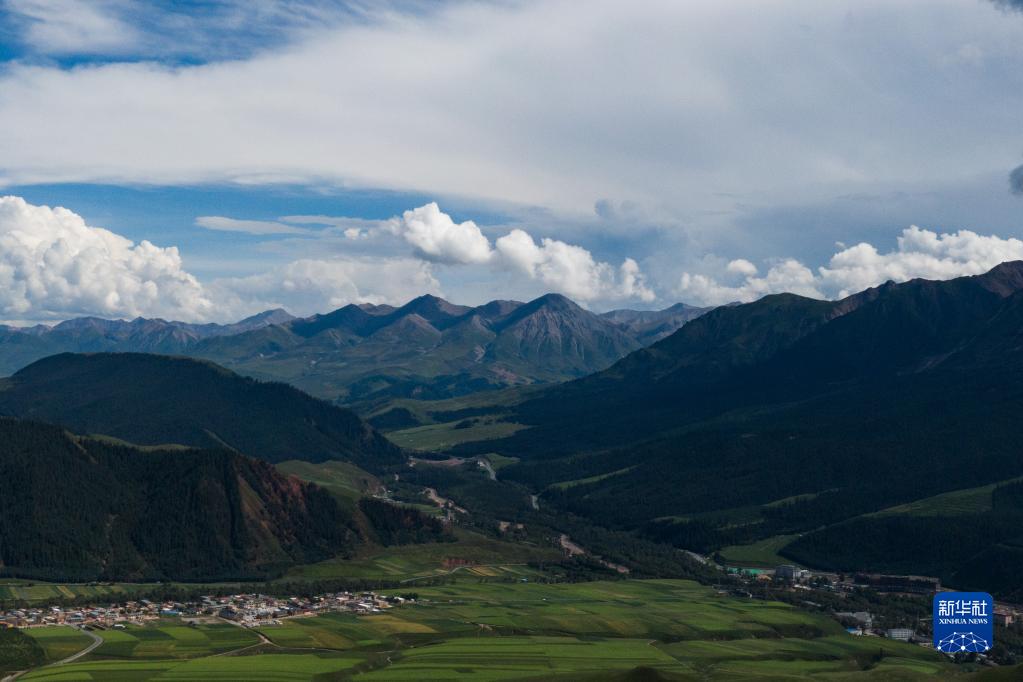 青海省海北藏族自治州祁連縣風(fēng)光(8月10日攝,無人機照片)。