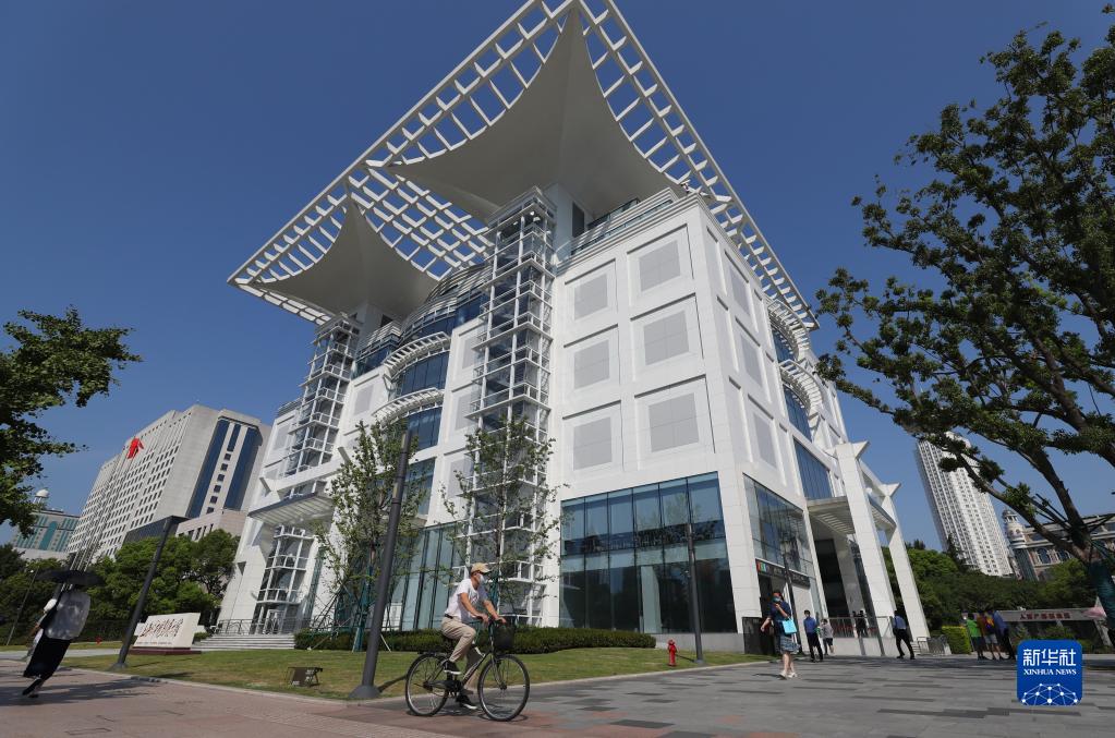這是8月11日拍攝的上海城市規劃展示館外景。