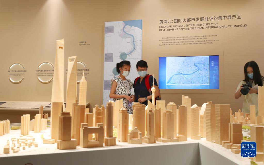 8月11日,參觀者在上海城市規劃展示館觀看上海陸家嘴建筑群模型沙盤。