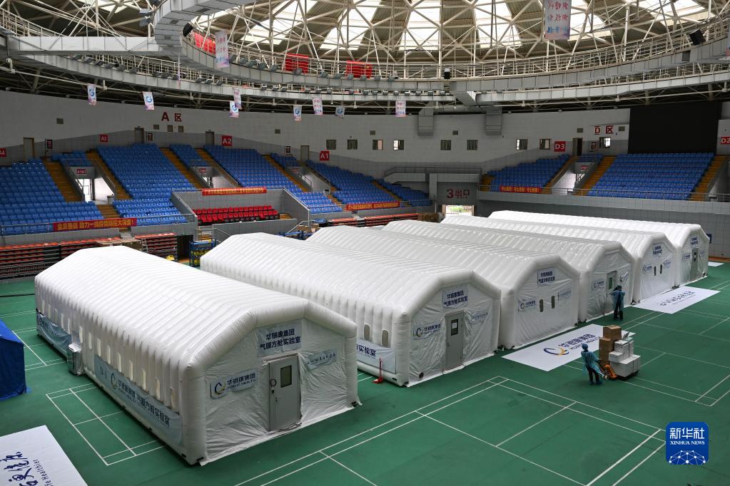 8月11日拍攝的由廣東省援海南三亞核酸檢測隊搭建的氣膜核酸檢測實驗室。