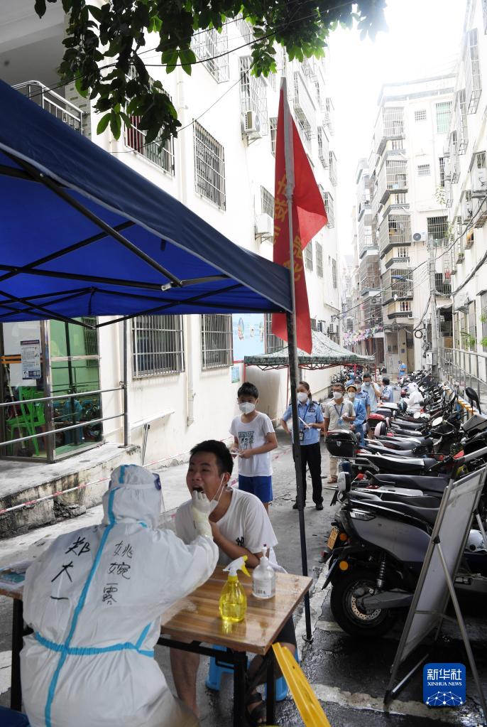 8月11日,在三亞市天涯區南邊海漁村,河南省援海南三亞醫療隊的醫護人員姚婉露為群眾做核酸檢測。