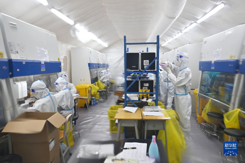 8月11日,廣東省援海南三亞核酸檢測(cè)隊(duì)的醫(yī)護(hù)人員在進(jìn)行核酸檢測(cè)工作。
