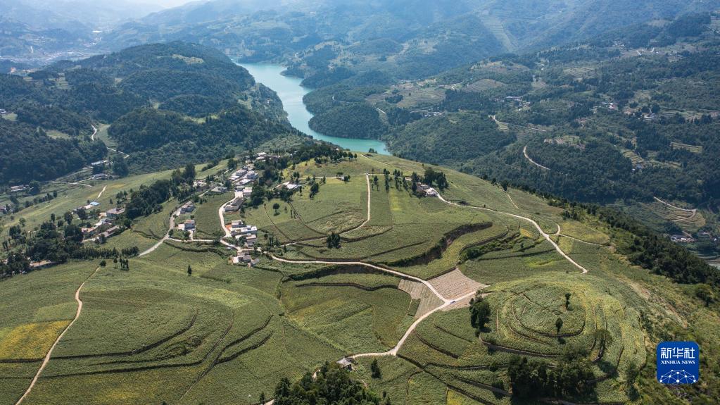 這是仁懷市長崗鎮(zhèn)茅坡村的高粱種植基地(8月4日攝,無人機照片)。