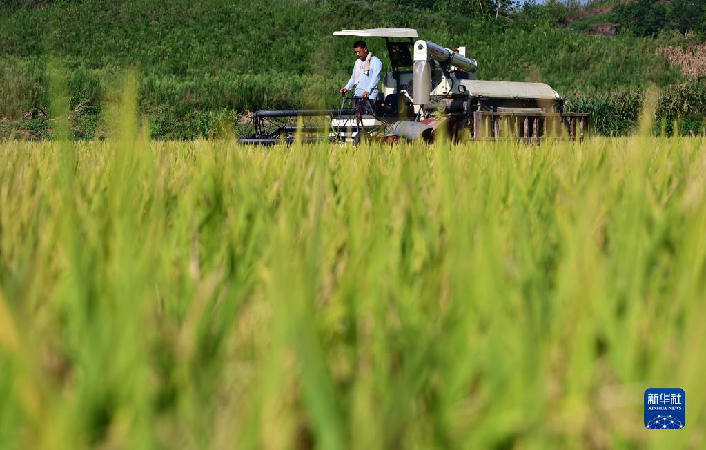近日,水稻進入收獲期,各地農民抓緊農時收獲、晾曬稻谷。