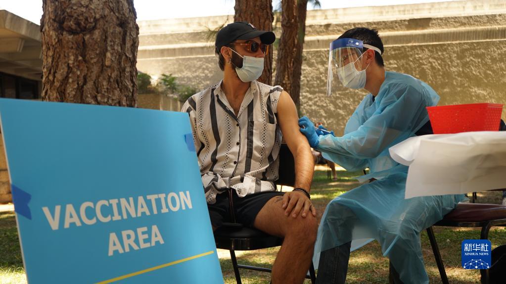 8月11日,一名男子在美國洛杉磯一處猴痘疫苗接種點接種疫苗。