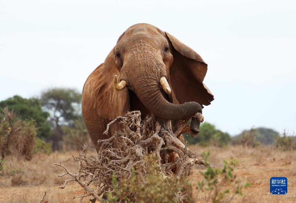 這是7月28日在肯尼亞察沃國家公園拍攝的大象。