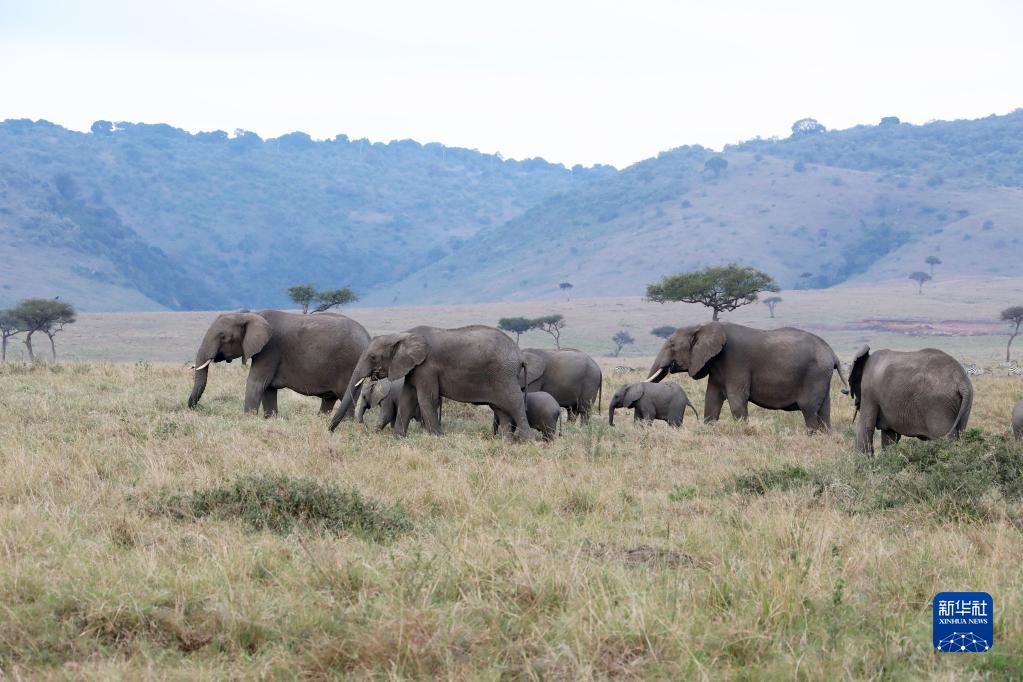 這是2021年8月3日在肯尼亞馬賽馬拉國家公園拍攝的大象。