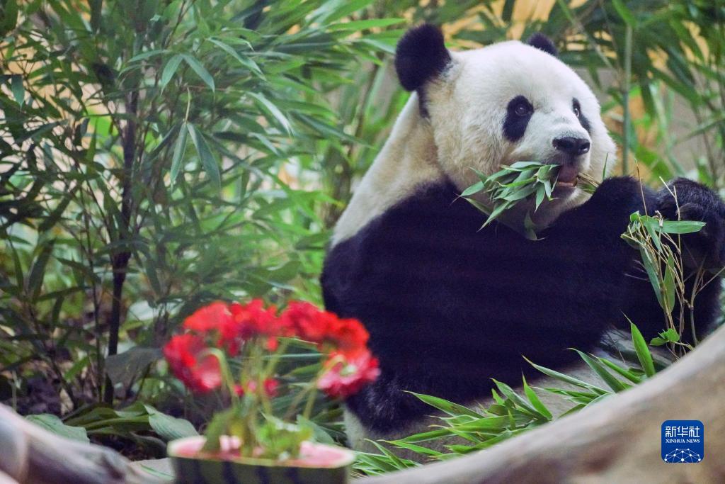當日,位于黑龍江省尚志市的中國亞布力熊貓館里,大熊貓思嘉度過了自己16歲生日。飼養員為思嘉準備了用冰做的生日蛋糕、水果、鮮竹筍等美食,還有玩具和鮮花,思嘉在自己的生日派對上邊吃邊玩,萌態十足。