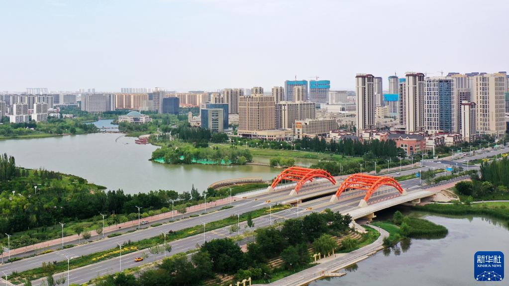 這是8月10日拍攝的蘭州新區城市面貌(無人機照片)。