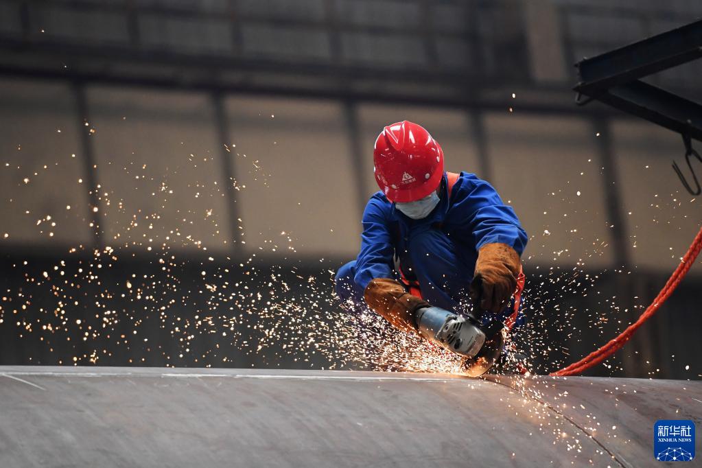 工人在蘭州新區蘭石集團高端裝備產業園車間內作業(8月11日攝)。