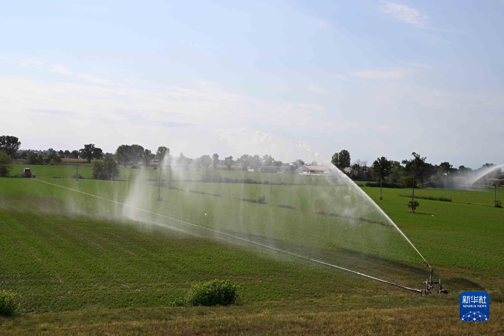 8月12日,灌溉設備在意大利倫巴第大區曼托瓦的田間工作。