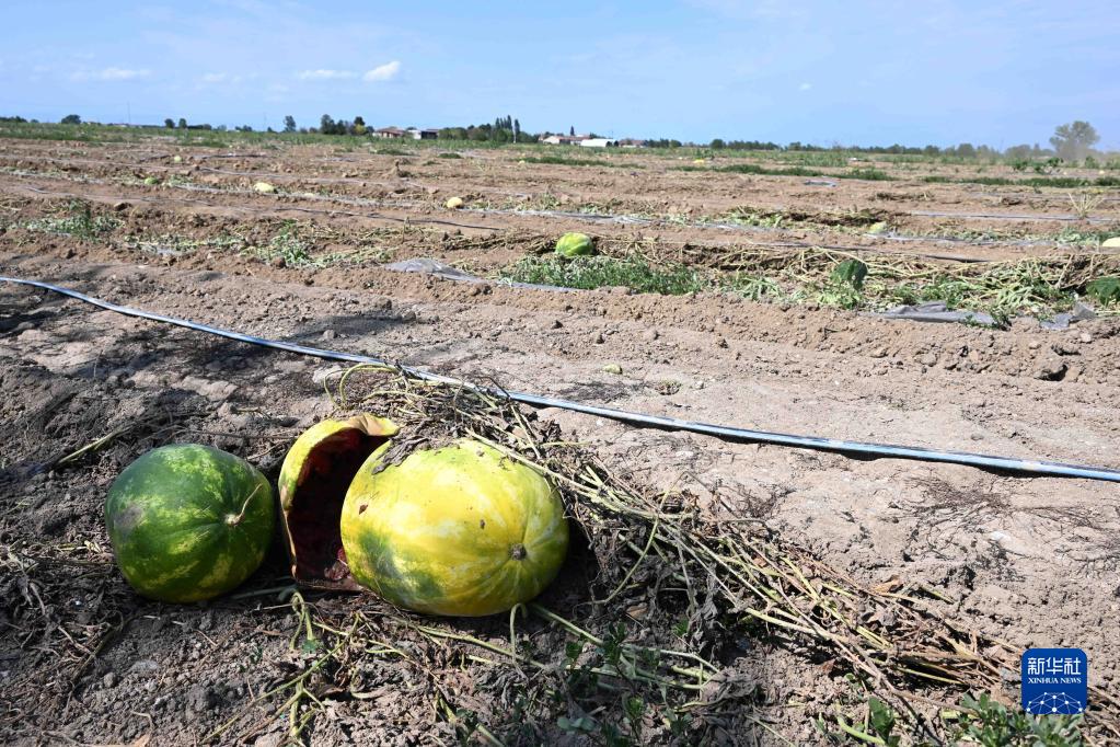 這是8月12日在意大利倫巴第大區(qū)曼托瓦拍攝的因干旱受損的西瓜。