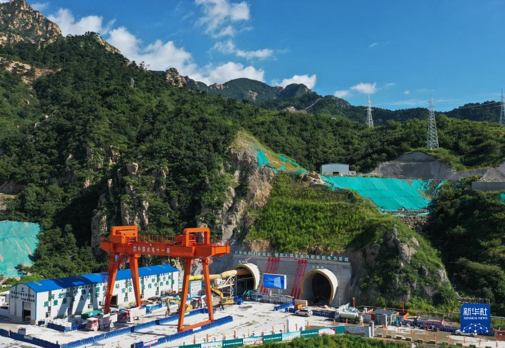 8月13日拍攝的秦皇島市撫寧抽水蓄能電站建設工地(無人機照片)。
