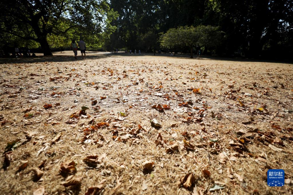 8月13日,在英國倫敦圣詹姆斯公園,人們走過枯黃的草地。