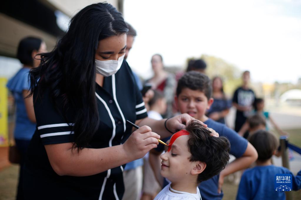 8月13日,在巴西首都巴西利亞舉辦的“中國一瞬”文化體驗周活動上,一名男孩體驗面部彩繪。