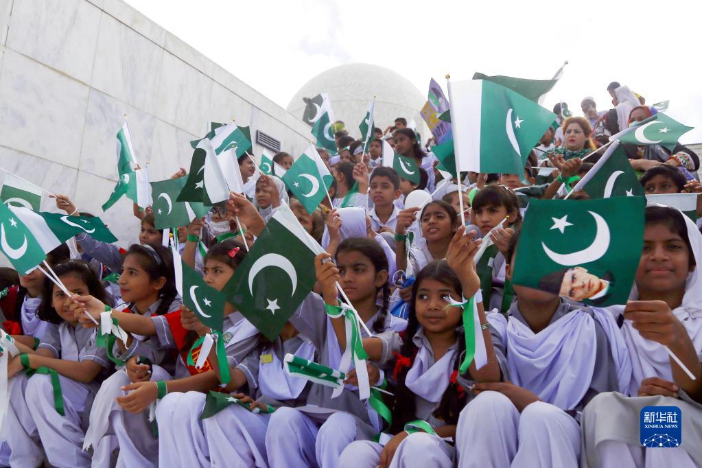 8月14日,學生在巴基斯坦卡拉奇參加獨立日慶祝活動。