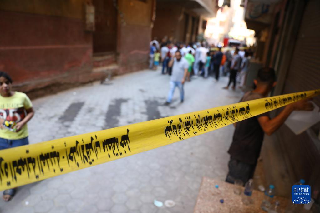8月14日,在埃及吉薩省,警察在火災(zāi)現(xiàn)場(chǎng)附近拉起警戒線。