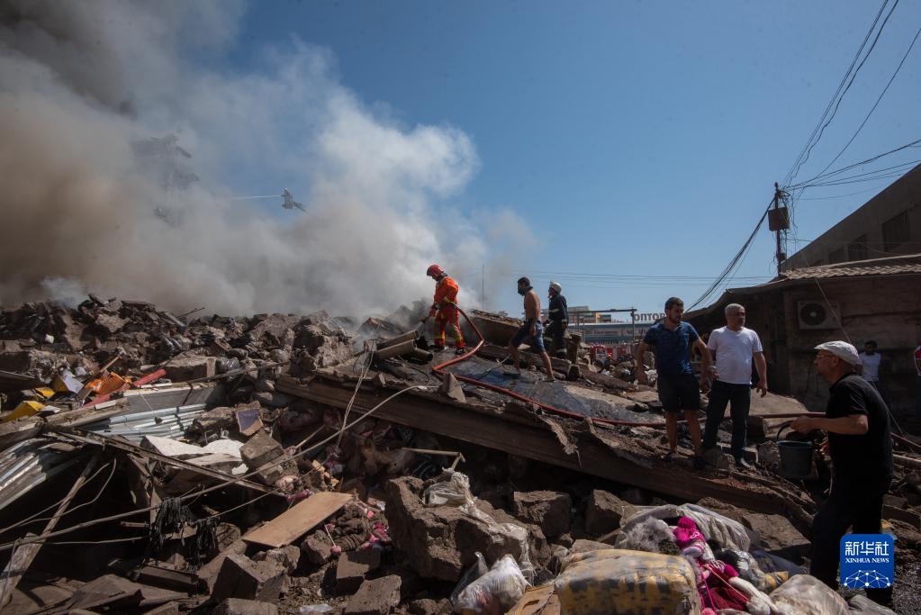 8月14日,救援人員在亞美尼亞首都埃里溫的購物中心爆炸現(xiàn)場工作。
