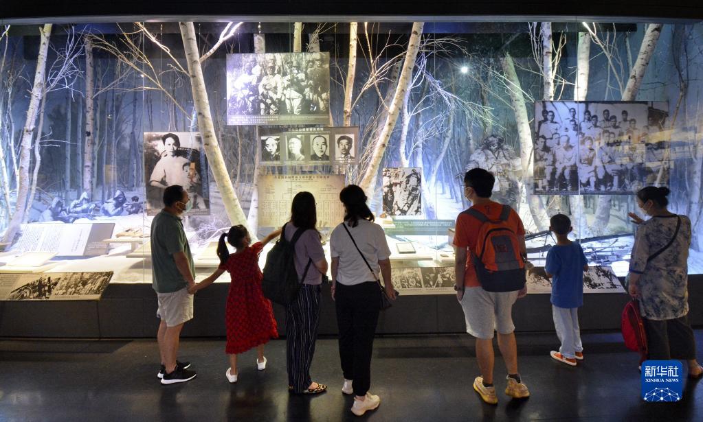 8月15日,觀眾在中國人民抗日戰爭紀念館內觀看展覽。