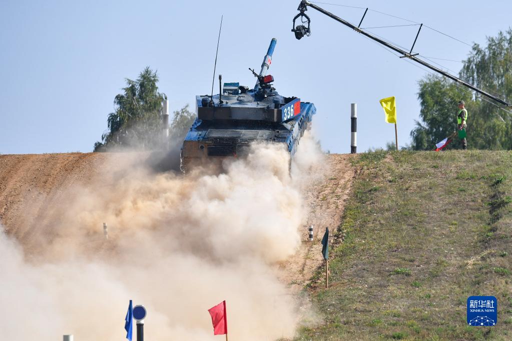 “國際軍事比賽-2022”中的“坦克兩項”比賽14日在俄羅斯莫斯科州阿拉比諾靶場繼續進行。在單車賽第三組第一場比賽中,編號336的中國參賽隊96B坦克亮相賽場,順利完成首賽。