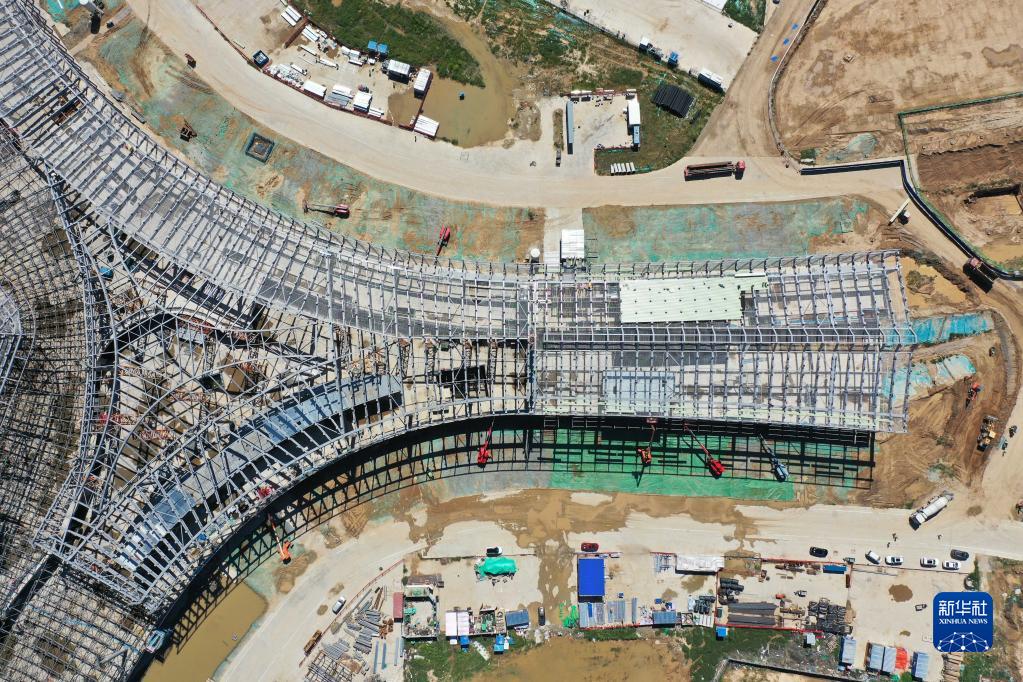 這是8月15日拍攝的呼和浩特新機場工程施工現(xiàn)場(無人機照片)。