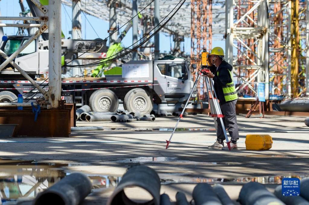 8月15日,工人在呼和浩特新機場工程施工現場作業。