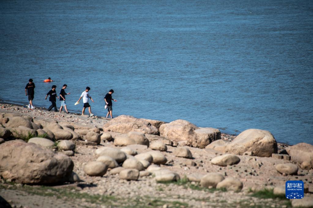8月15日,武漢市民在漢口江灘灘涂游玩。