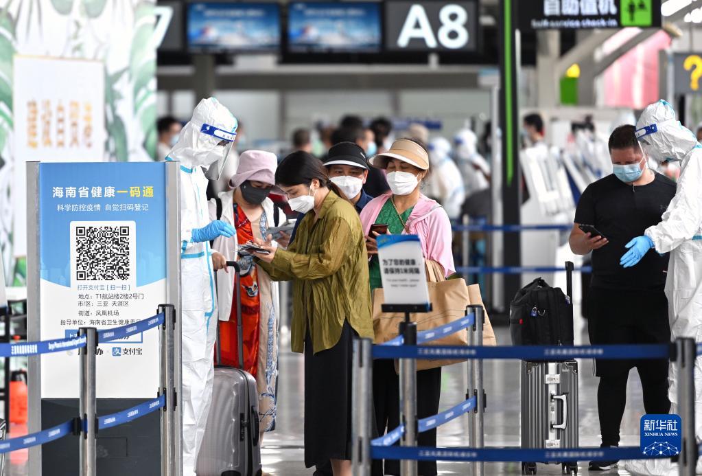 8月15日,乘客在三亞鳳凰國際機場核驗核酸檢測陰性證明。