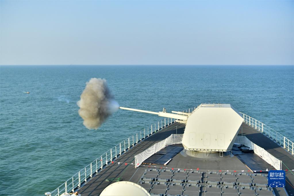 南昌艦組織主炮對海射擊演練(2022年3月21日攝)。