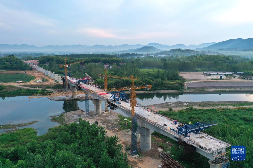 8月16日,由中鐵五局承建的宣績鐵路全線重點控制工程——水陽江特大橋連續梁合龍。宣績鐵路位于安徽省宣城市境內,北起宣城市宣州區,南至績溪縣,線路全長111.7公里,設計時速350公里。
