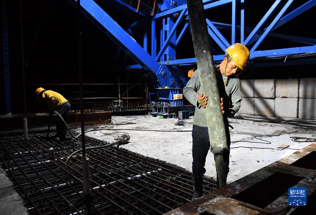8月16日凌晨,中鐵五局施工人員在宣績鐵路水陽江特大橋連續(xù)梁合龍現(xiàn)場作業(yè)。