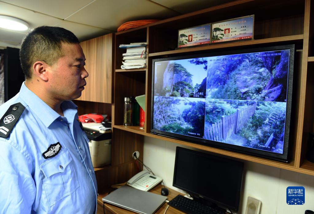 8月14日,胡曉春通過監控查看迎客松及周邊的情況。