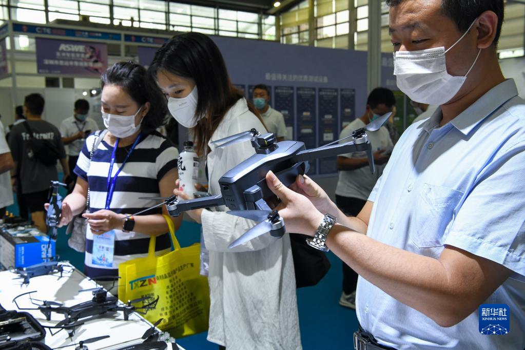 8月16日,觀眾在第十屆中國電子信息博覽會上了解一款無人機產品。