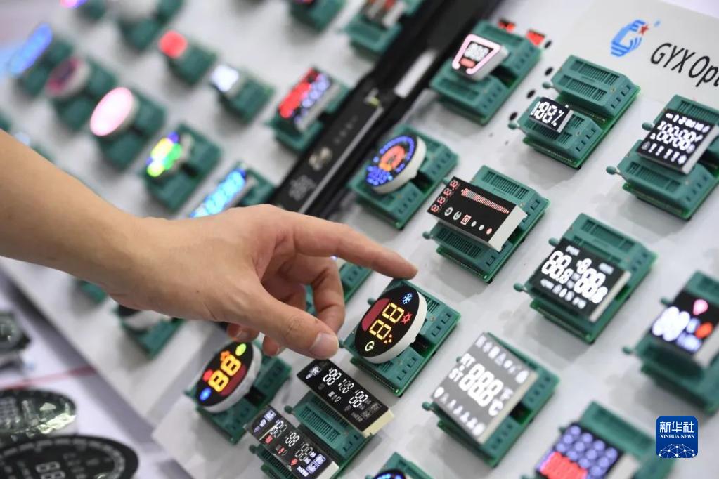 8月16日,觀眾在第十屆中國電子信息博覽會(huì)上參觀數(shù)碼管顯示屏。