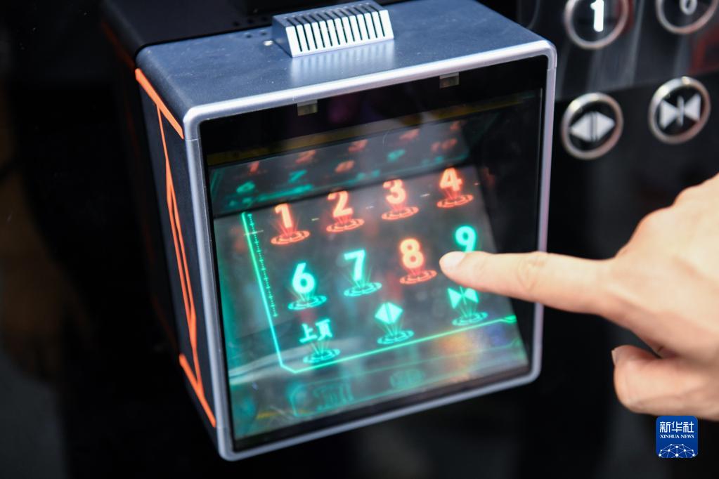 8月16日,觀眾在第十屆中國電子信息博覽會上體驗非接觸空氣成像電梯按鍵。