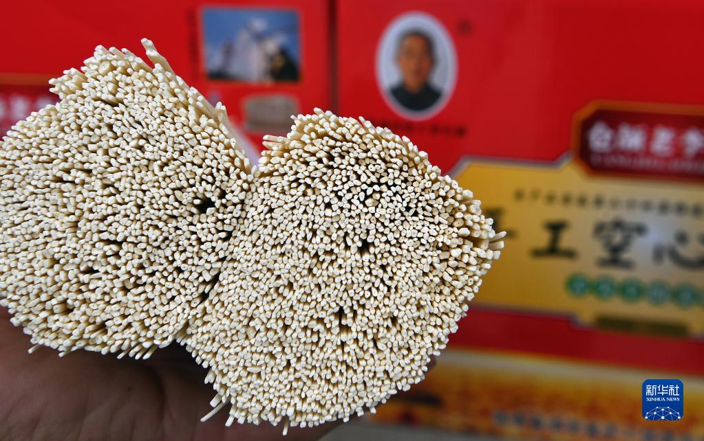 8月16日拍攝的李長(zhǎng)滿銷售的成品空心掛面。