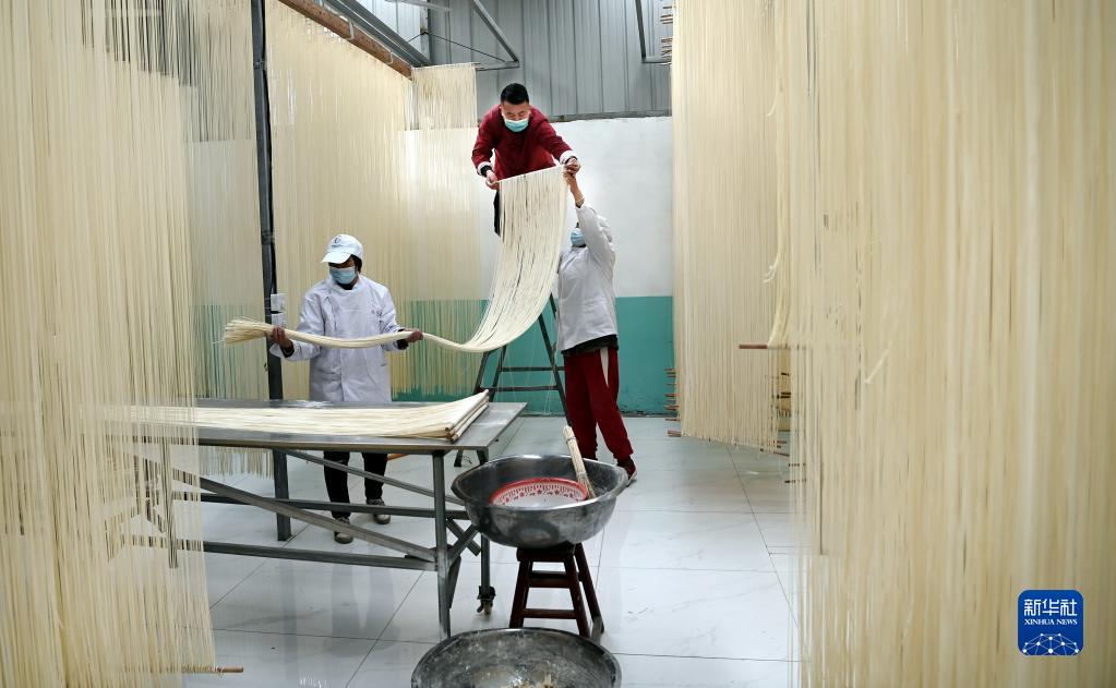 村民在李長滿的老李家手工掛面專業合作社務工(3月18日攝)。