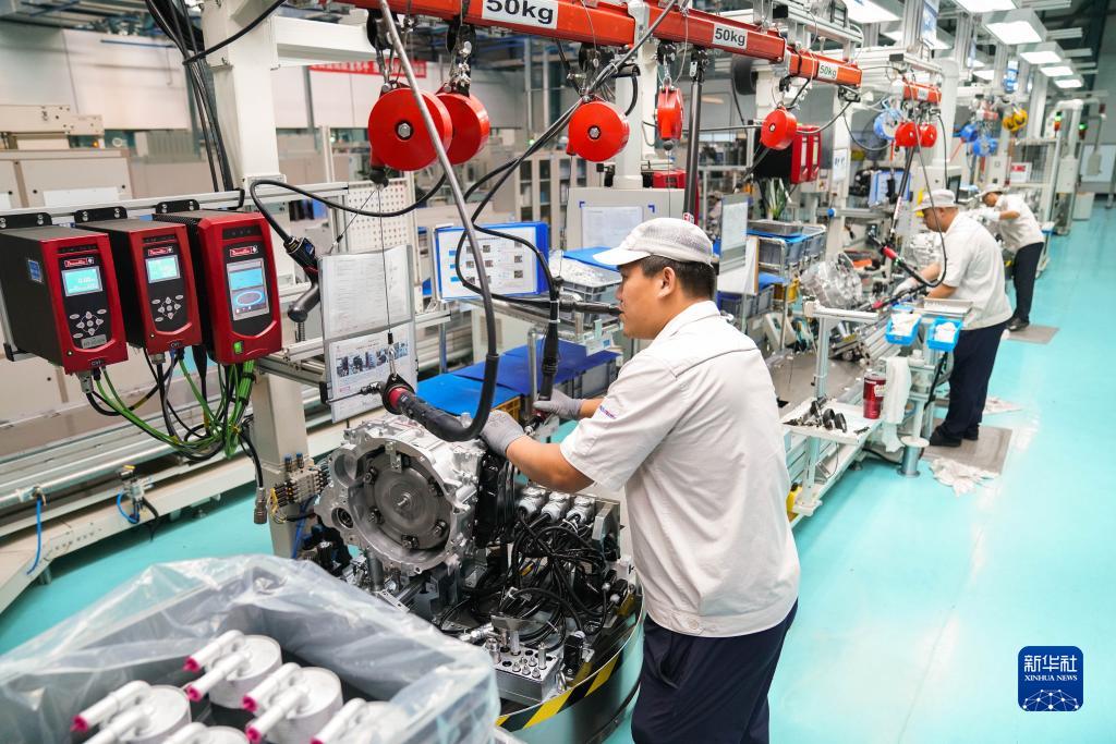 在哈爾濱東安汽車動力股份有限公司生產(chǎn)車間,工人在生產(chǎn)作業(yè)(8月16日攝)。