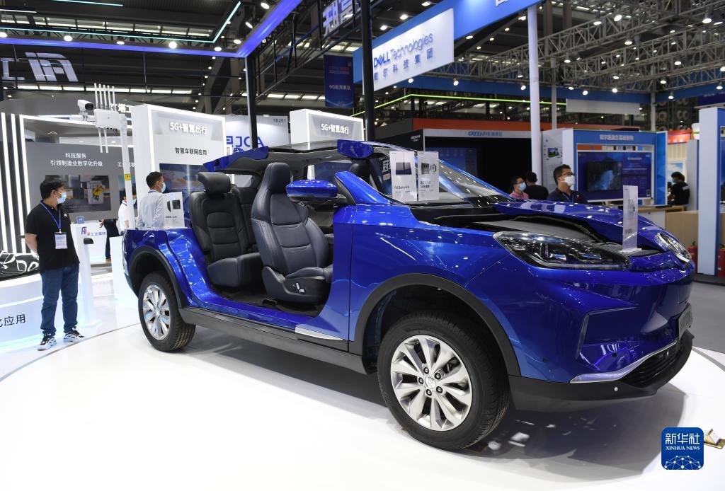 8月16日在第十屆中國(guó)電子信息博覽會(huì)工業(yè)富聯(lián)展臺(tái)拍攝的汽車(chē)智能座艙。