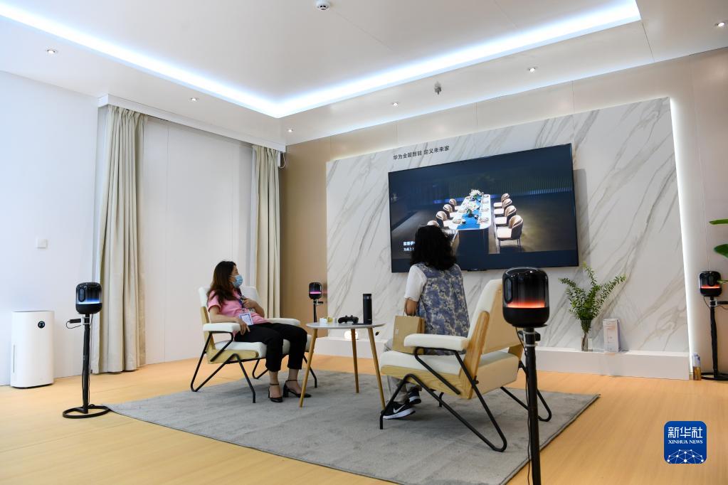 在第十屆中國(guó)電子信息博覽會(huì)上,觀眾在體驗(yàn)華為全屋智能產(chǎn)品(8月16日攝)。