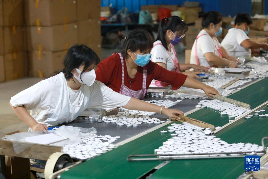 8月17日,在河北省石家莊市行唐縣一家外貿(mào)蠟燭生產(chǎn)企業(yè),工人在分裝蠟燭。