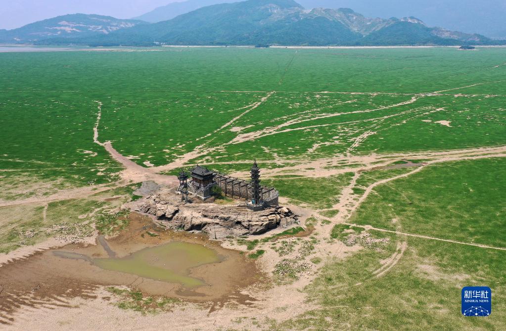 鄱陽湖水位下降,湖區的落星墩完全展露出來(8月17日攝,無人機照片)。