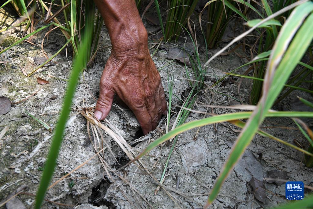 這是江西省廬山市沙湖山管理處長湖管理站一處龜裂的稻田(8月17日攝)。