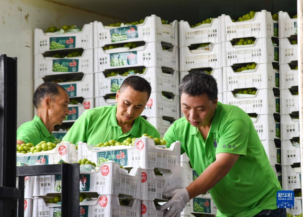 當日,四川省眉山市彭山區葡萄種植基地內一派忙碌,工人將葡萄采摘、稱重、套袋、裝箱,運往各地市場。據了解,當地應用數字化大棚技術,通過智能化管理系統,能有效緩解連日來高溫天氣對葡萄產生的不利影響,實現穩產穩收。