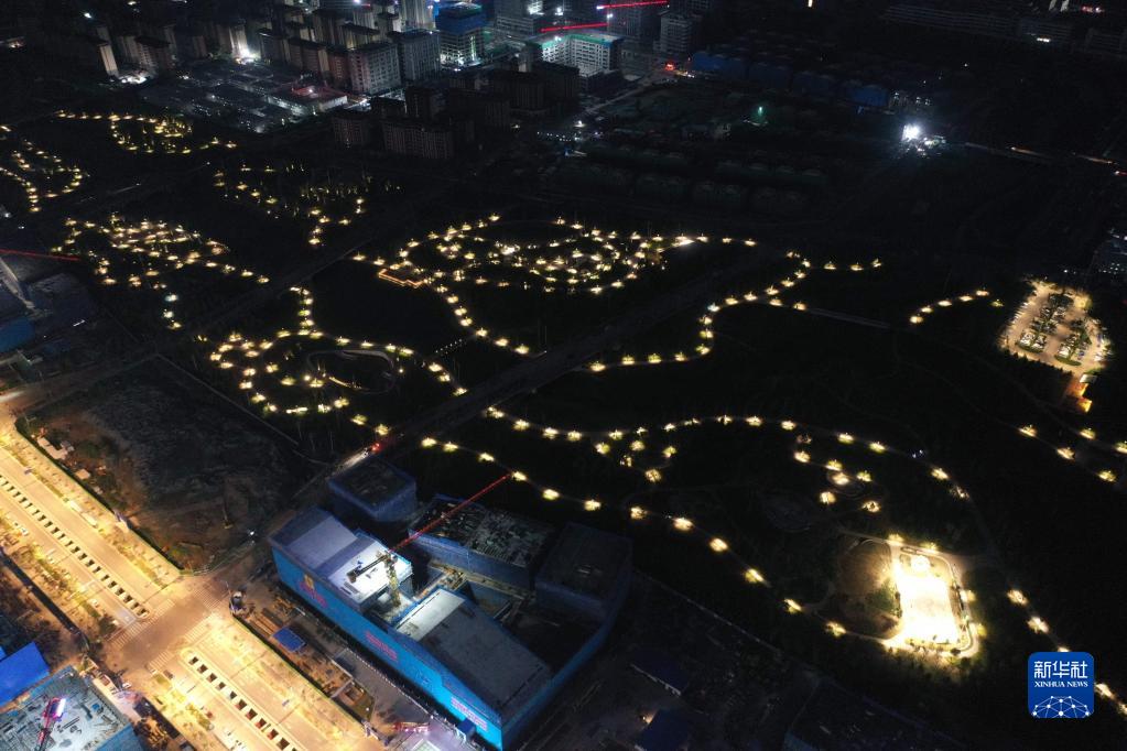 河北雄安新區容東片區雄安·電建智匯城建設項目夜景(8月17日攝,無人機照片)。