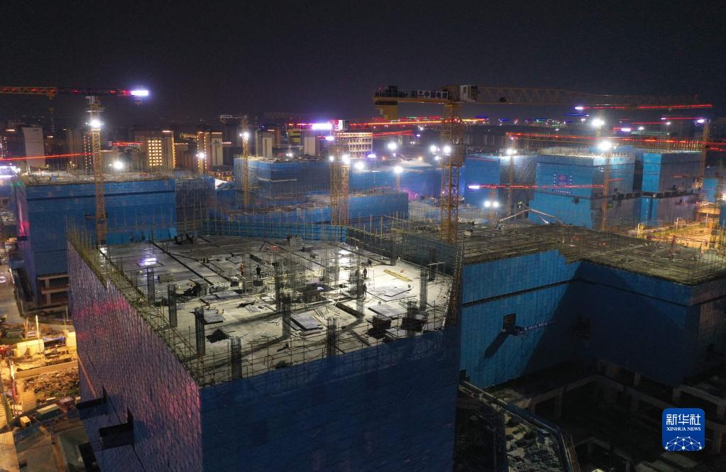 河北雄安新區(qū)容東片區(qū)雄安·電建智匯城建設(shè)項(xiàng)目夜景(8月17日攝,無人機(jī)照片)。